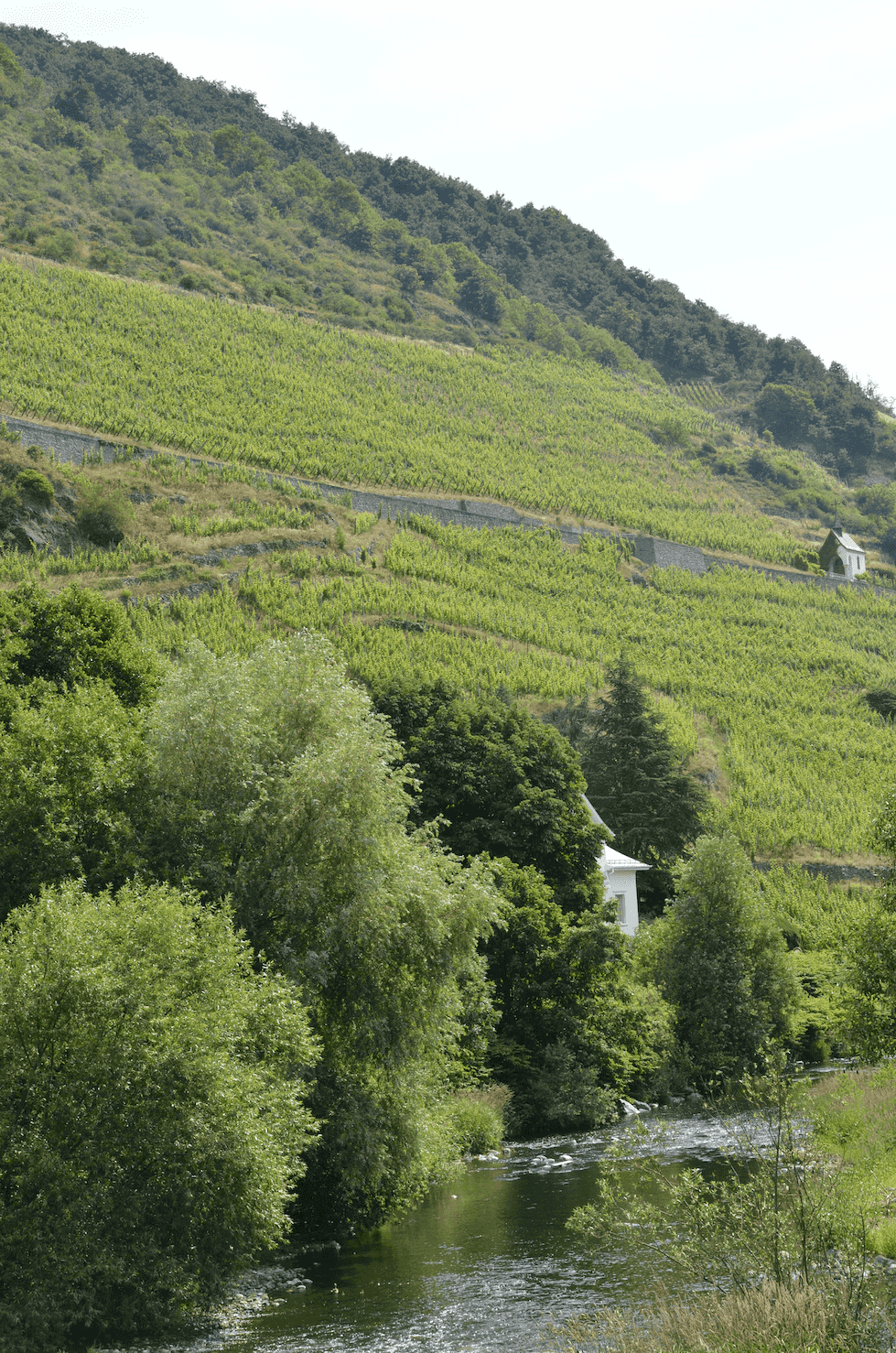 Hangneigung Fluss WaldNehmt ihr nun einen beliebigen Pfälzer Riesling, einen Riesling aus dem Kastanienbusch, dem ÜrzWürz (wie Rieslingfreaks den Würzgarten gerne flapsig nennen) und aus einer Graacher Lage und verkostet diese vier in einer Blindprobe, werdet Ihr mit nur ein bisschen Übung die beiden Moselaner und Pfälzer gruppieren. Gleichzeitig könntet Ihr aber in einer weiteren, getrennten Blindprobe verschiedener Pfälzer und Moselaner bei den ersteren die Weine aus dem Kastanienbusch herausfiltern, weil sie einfach etwas untypisch für die Pfalz sind. Bei den Rieslingen von der Mosel könntet Ihr vermutlich die Graacher isolieren, weil auch sie im Kontext andersartig sind.